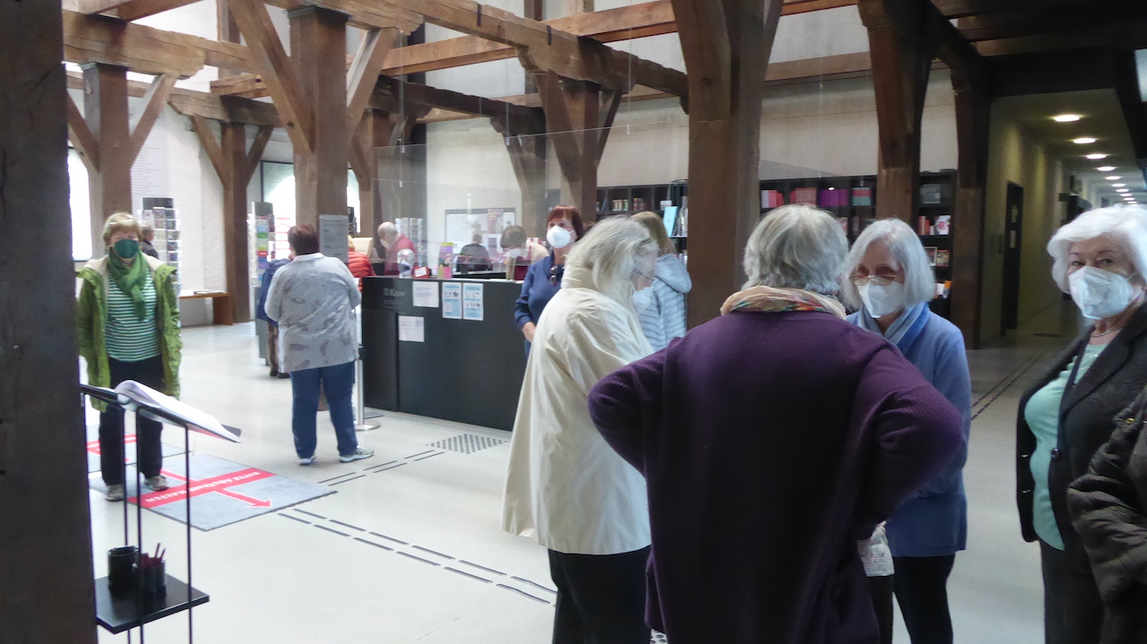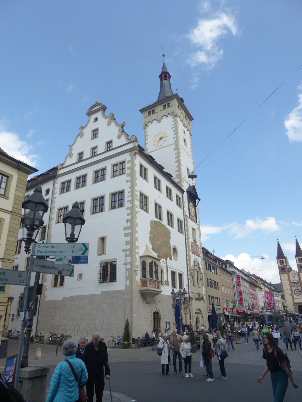 Nach dem Mittagessen („standesgemäß“ im Ratskeller) eine weitere Premiere: Eine Stadtführung durch Würzburg per Bus. Diese endete auf dem riesigen Residenzplatz - in Laufnähe zu mehreren Cafés.